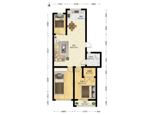 房屋戶型: 3 室2廳 1 廚1衛(wèi)