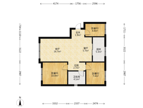 房屋戶型: 3 室2廳 1 廚1衛(wèi)