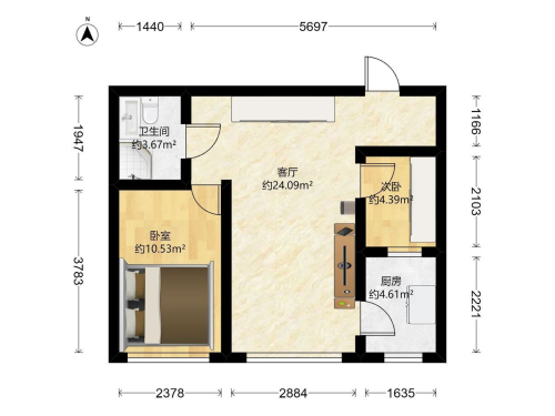 房屋戶型: 2 室1廳 1 廚1衛(wèi)