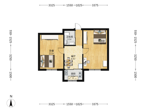 房屋戶(hù)型: 2 室1廳 1 廚1衛(wèi)