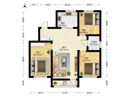 房屋戶型: 3 室2廳 1 廚2衛(wèi)